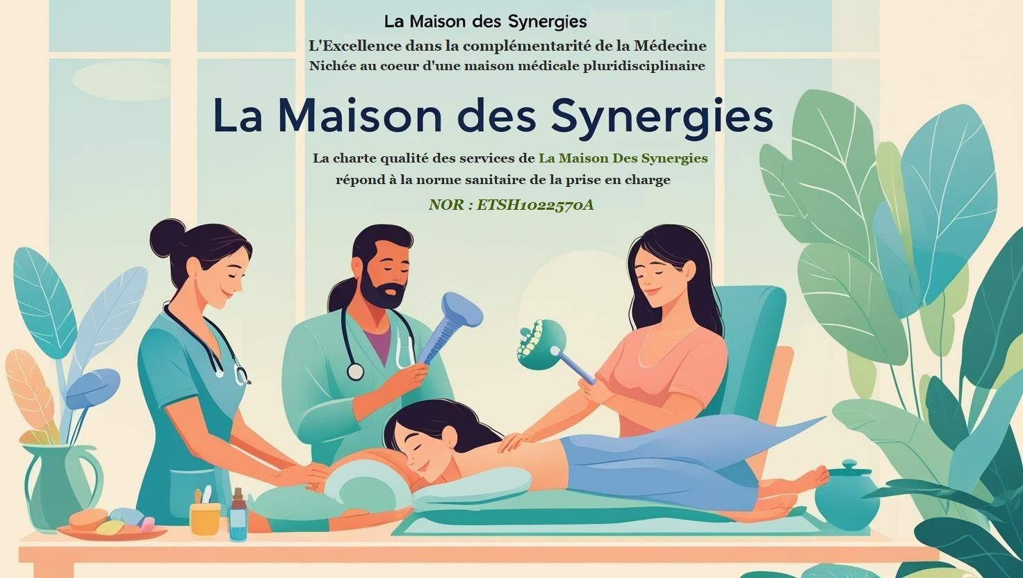 La Maison Des Synergies, depuis sa création, travaille en prévention pour le maintien de la santé sur les bases décrites précédemment et propose des services naturels que ce soit avec l'orthopédie, la réflexologie, l'énergiologie ou des conseils en compléments alimentaires, pour prévenir, soutenir et vous aider à retrouver votre équilibre santé, en vous accompagnant vers le mieux-être ou pour vous orienter vers des professionnels de santé plus spécialisés dans vos difficultés.